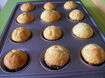 8. Repartir la mezcla en los moldes, supuestamente hasta la mitad. Según la receta da para 24 magdalenas, así que decidí poner la segunda tanda en un molde de pirex, así que me quedaron un pelín "esparramadas". Dejar reposar 15 minutos, en lo que se calienta el horno.